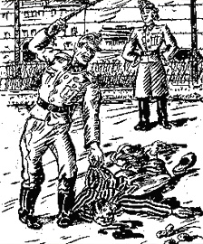 the neck were everyday occurrences. Epidemics of typhus and spotted fever were permitted to run rampant as a means of eliminating prisoners. Life in this camp meant nothing. Killing became a common thing, so common that a quick death was welcomed by the unfortunate ones." (International Military Tribunal "Blue Series," Vol. 3, p. 512/513)